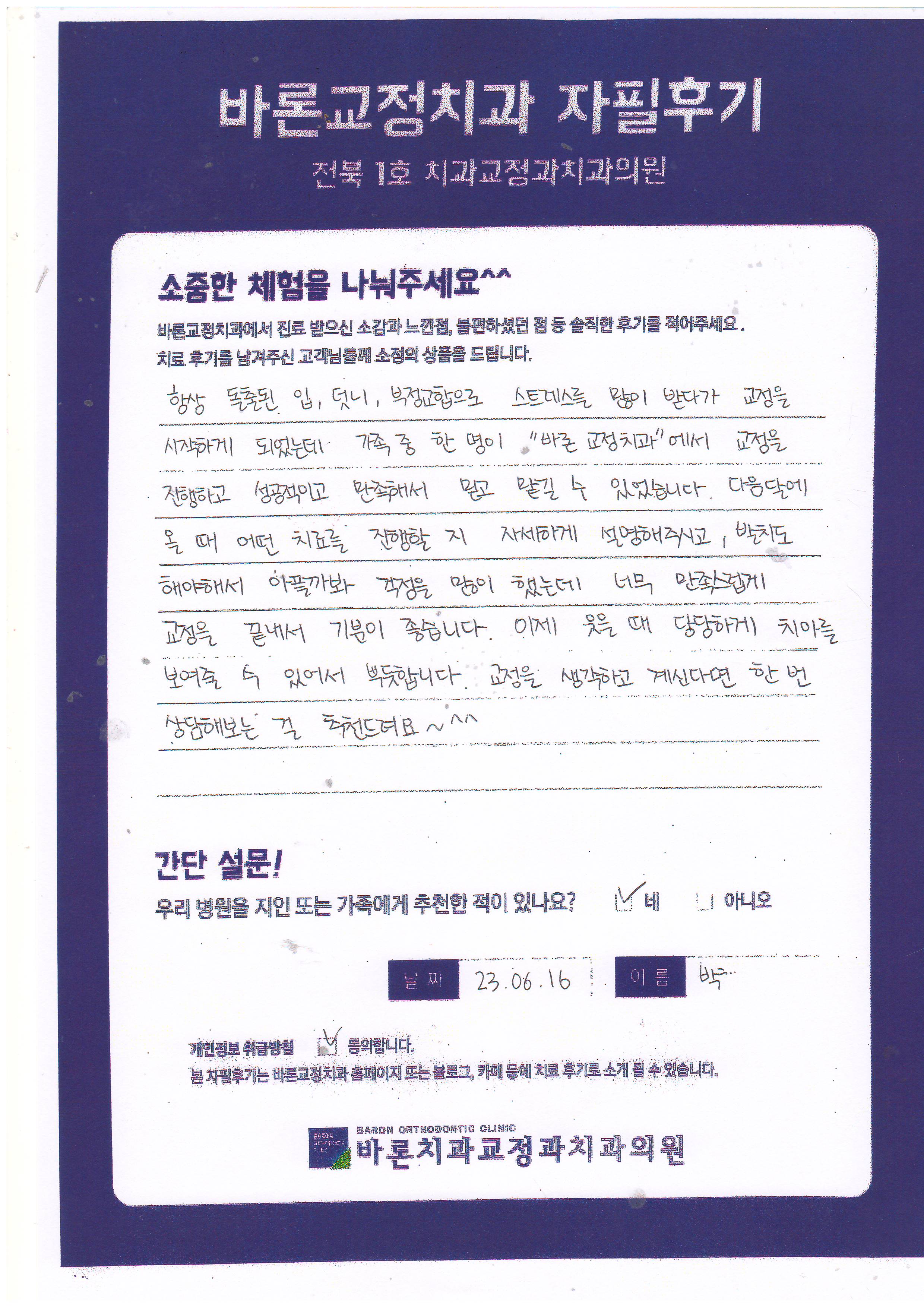 너무 만족스럽게 교정을 끝내서 기분이 좋습니다.