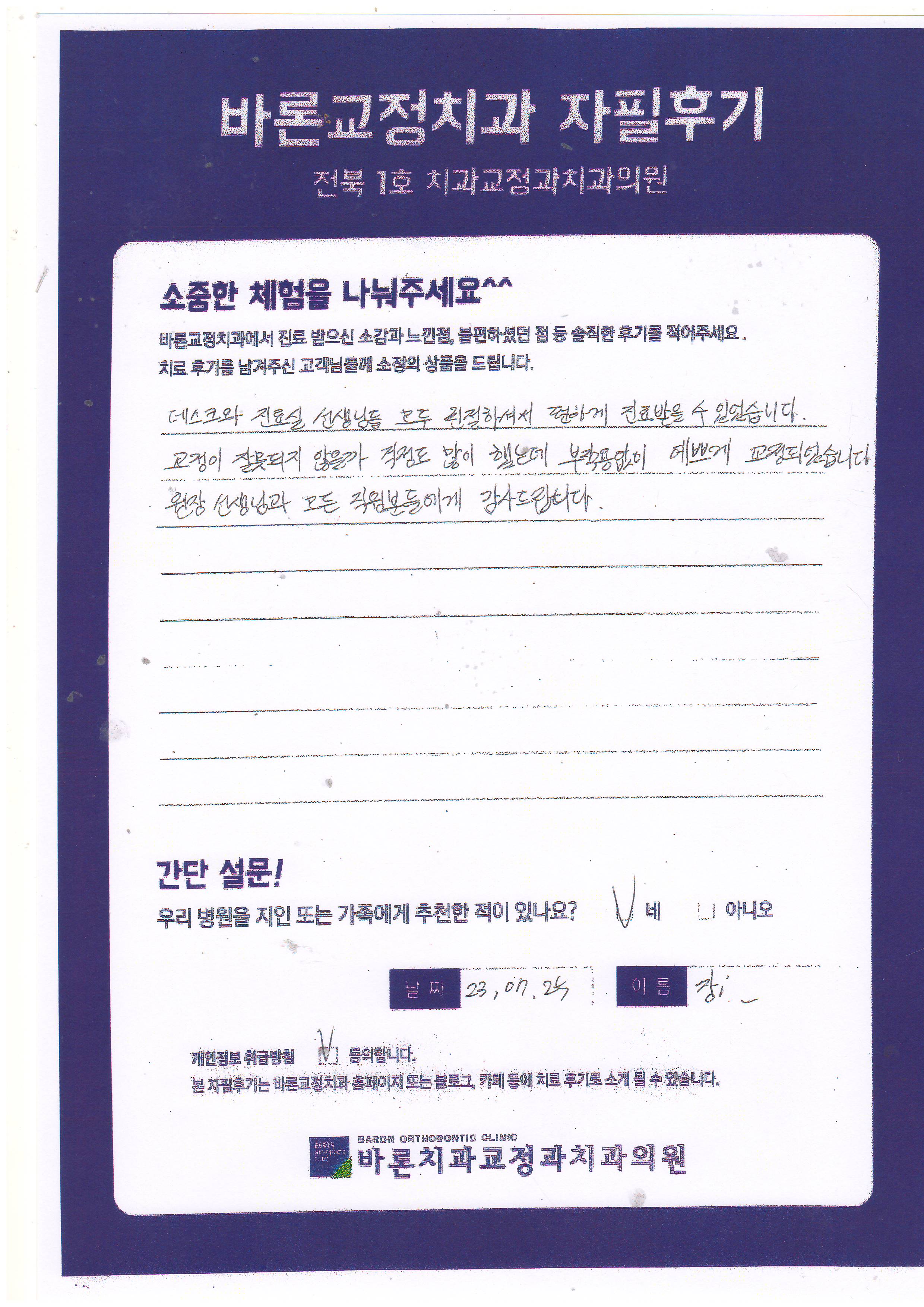 교정이 잘못되지 않을까 걱정도 많이 했는데 부작용 없이 예쁘게 교정되었습니다.