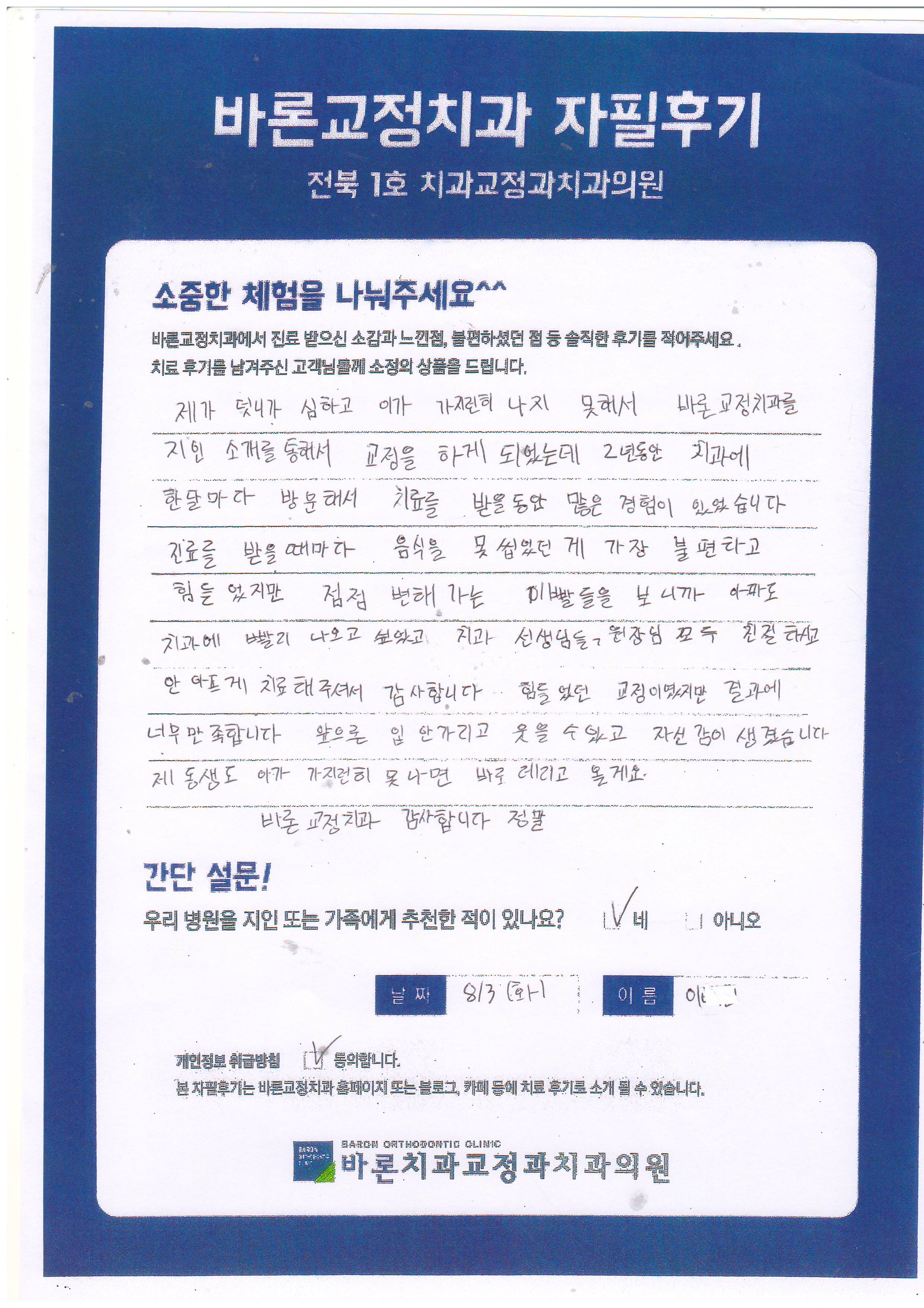 바론교정치과 감사합니다. 정말