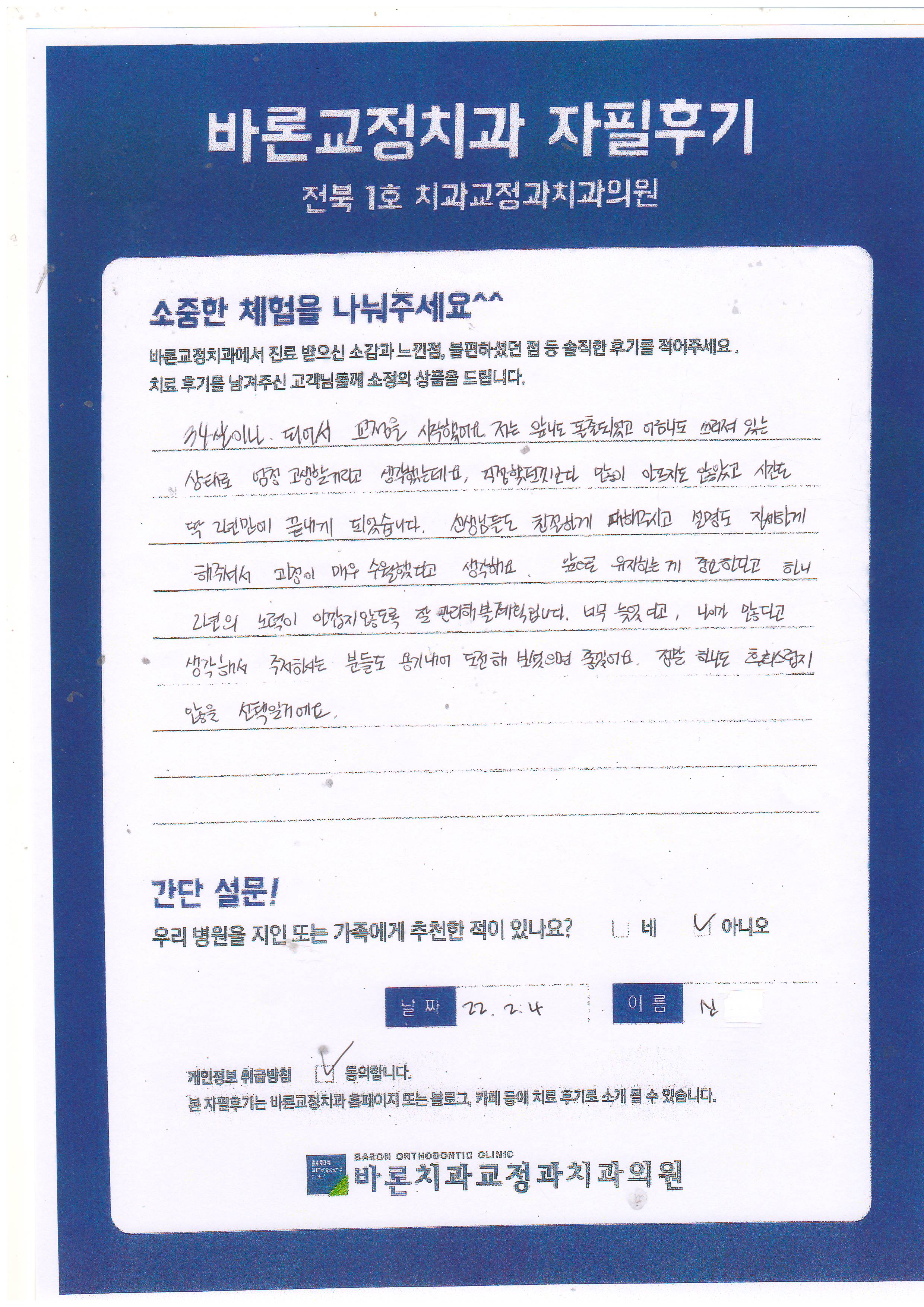 걱정했던 것보다 많이 아프지도 않았고 시간도 딱 2년 만에 끝내게 되었습니다.