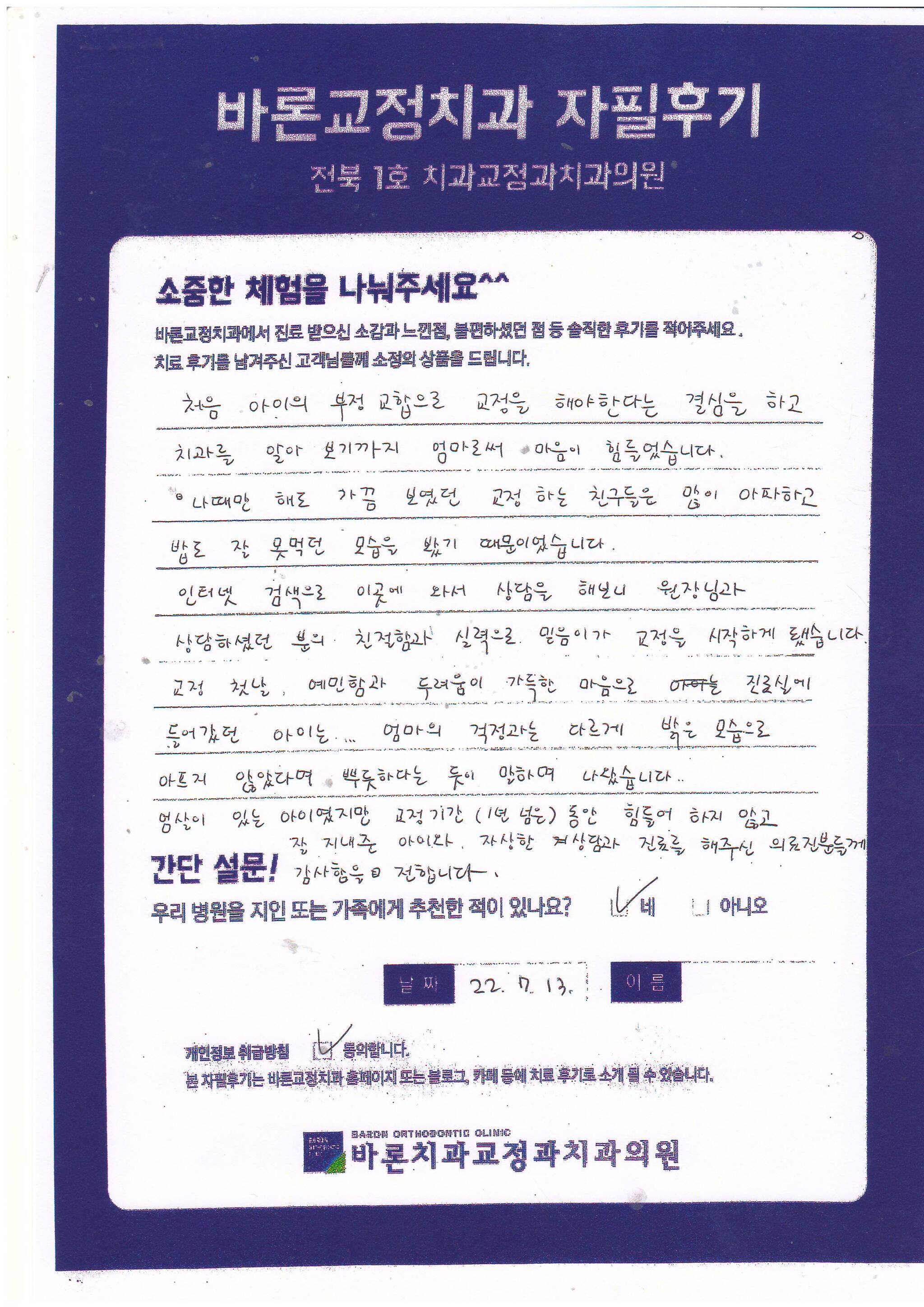 엄살이 있는 아이였지만 교정기간(1년 넘은) 동안 힘들어 하지 않고 잘 지내준 아이와