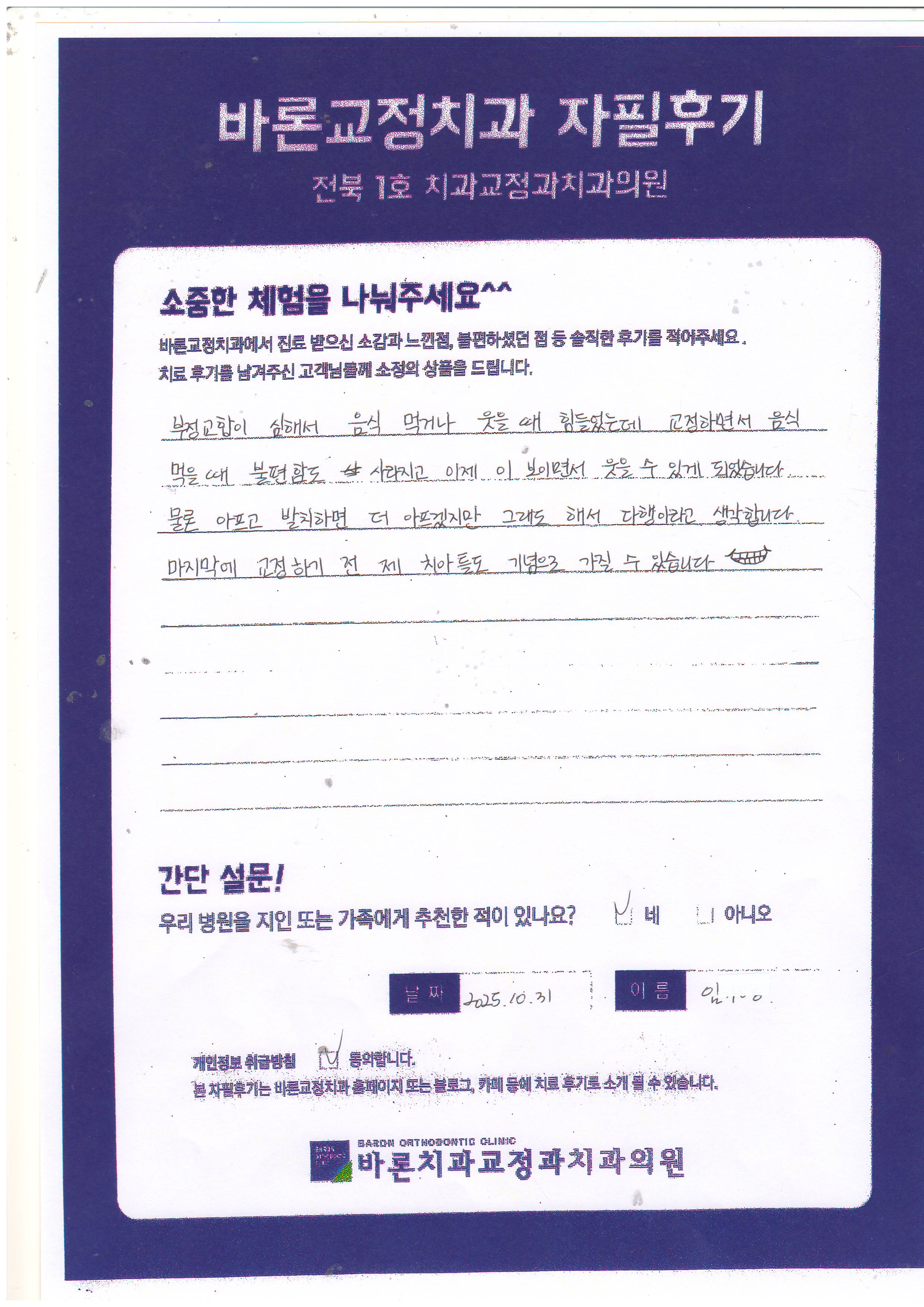 부정교합이 심해서 음식 먹거나 웃을 때 힘들었는데